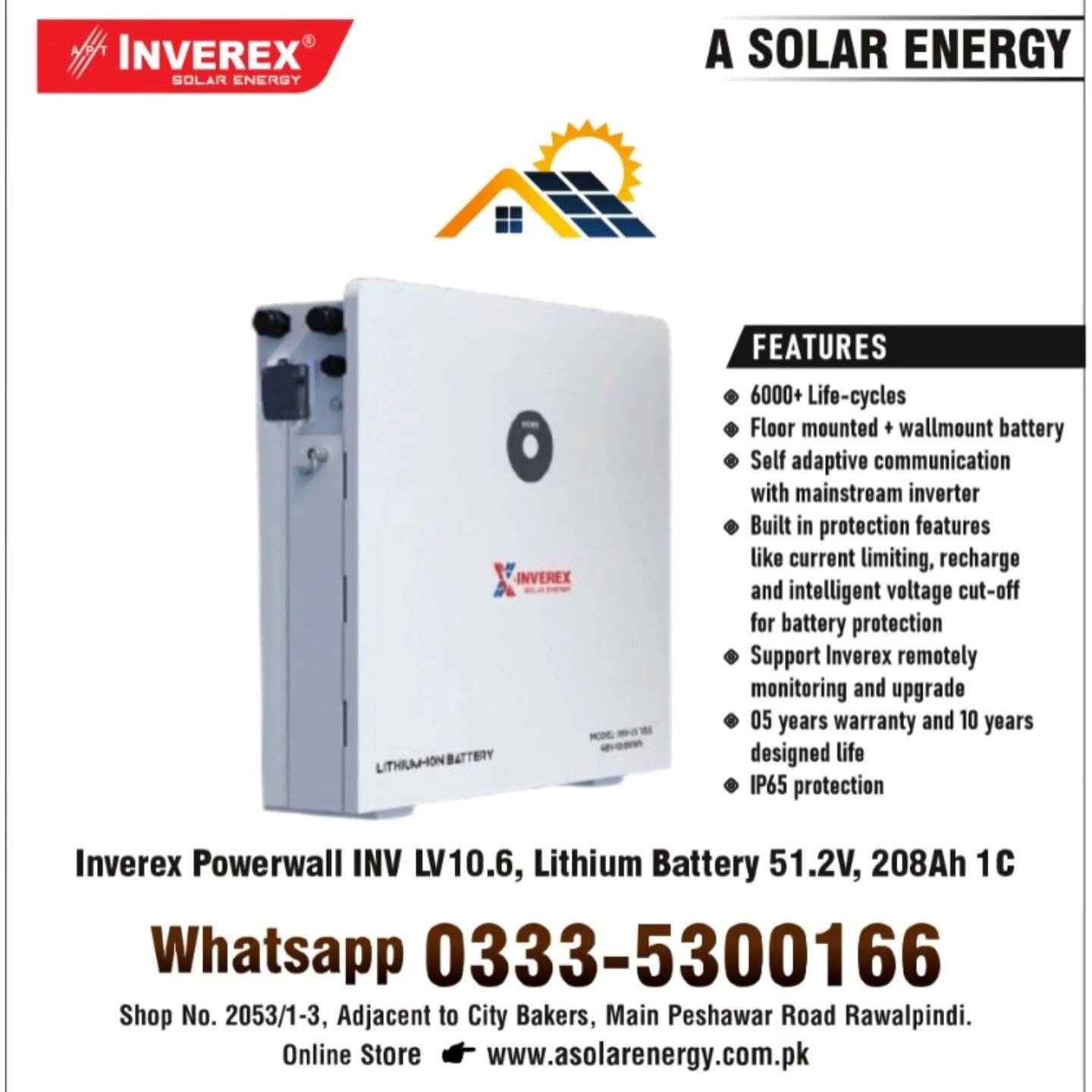 Inverex Powerwall INV LV10.6 51.2V 208Ah 1C Lithium battery (Copy)