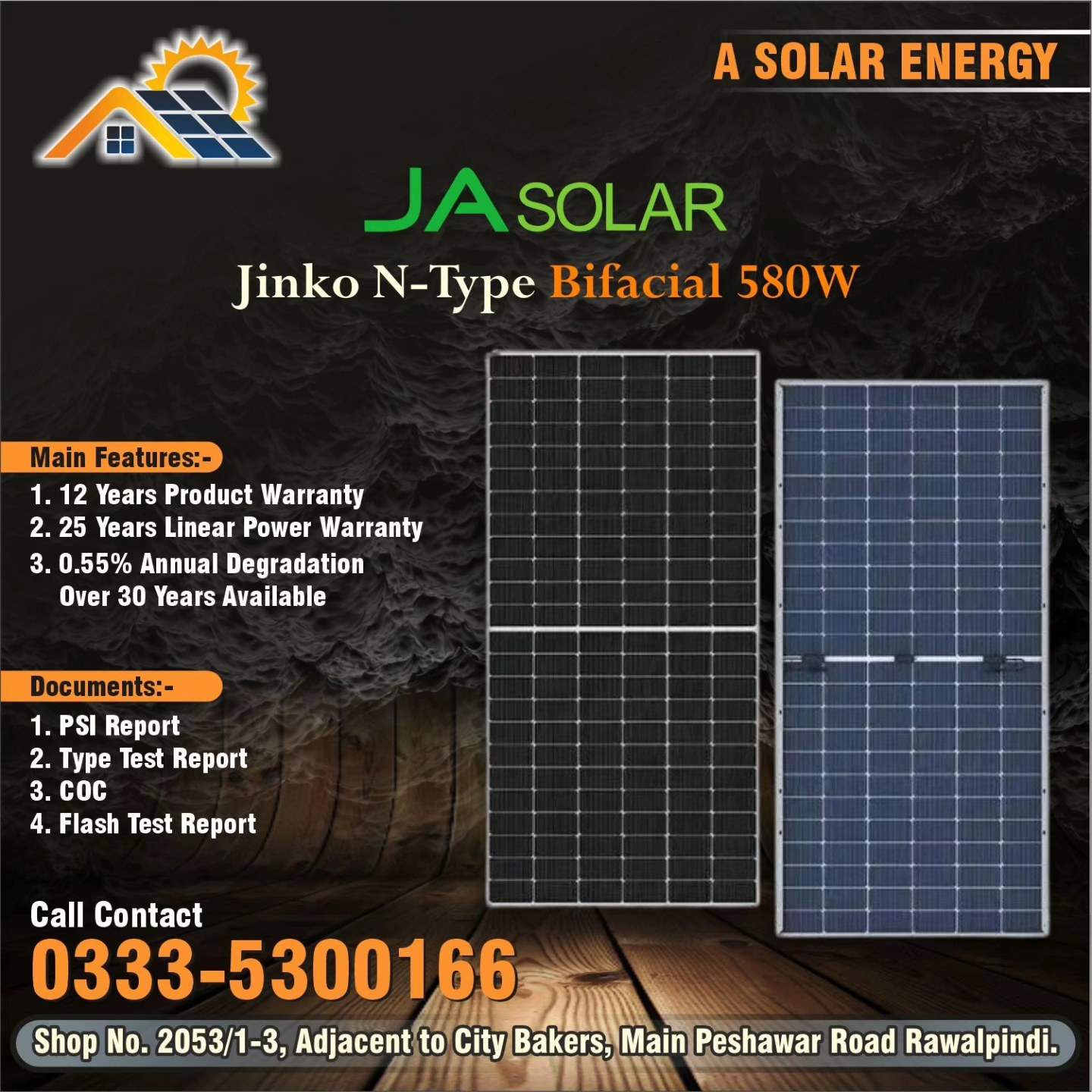 JA Solar 580 Watt N-Type Bifacial Double Glass
